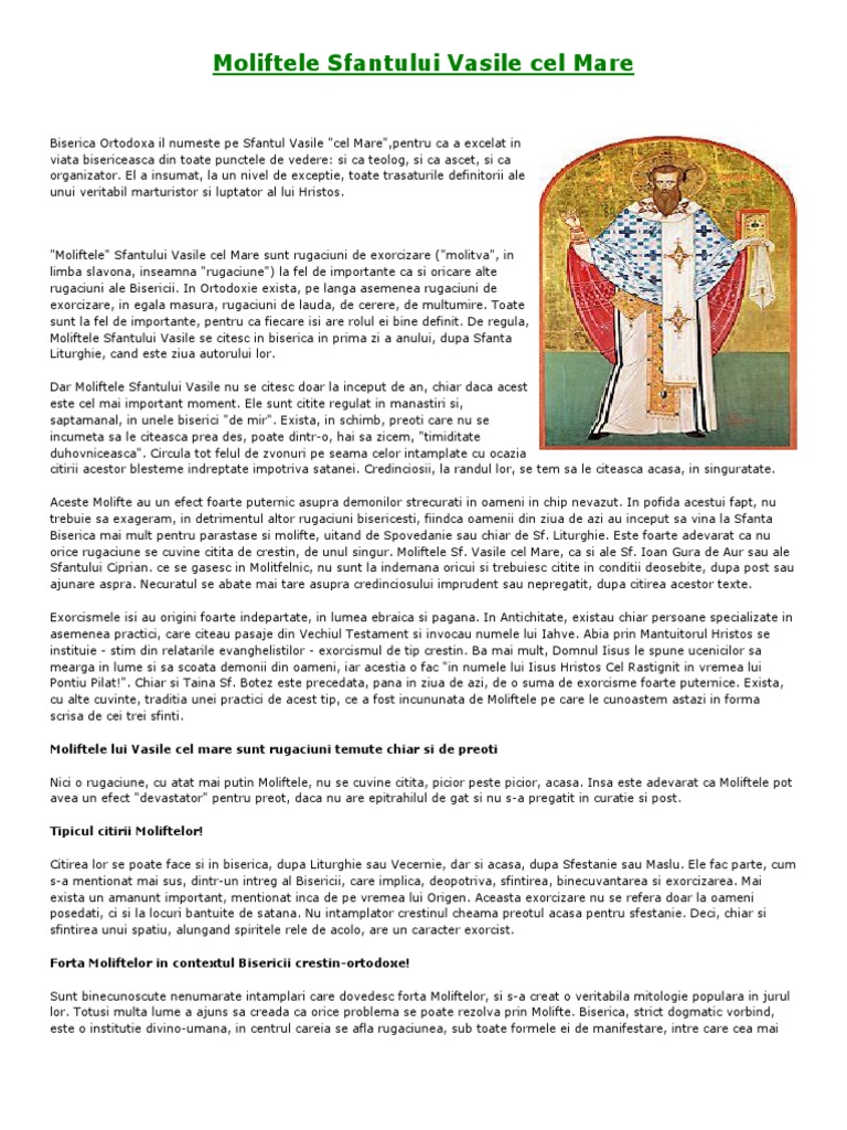 Ce Sunt Moliftele Sfantului Vasile Cel Mare Casa Creștinului