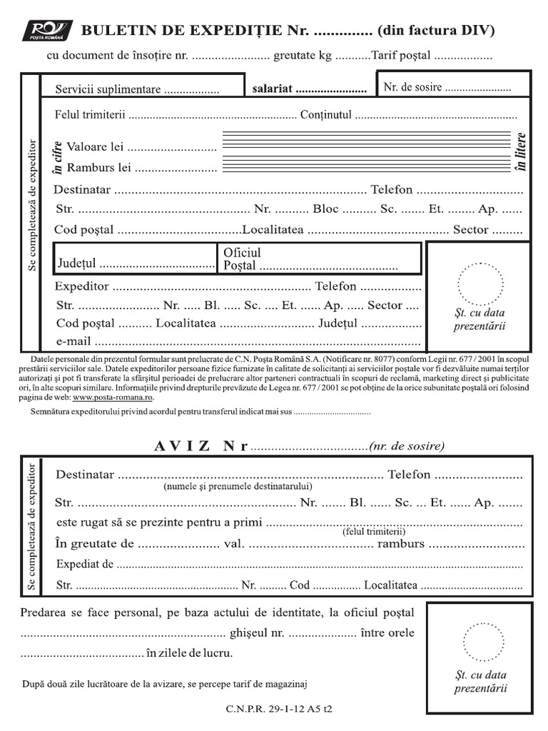 Buletin De Expeditie Posta Pdf