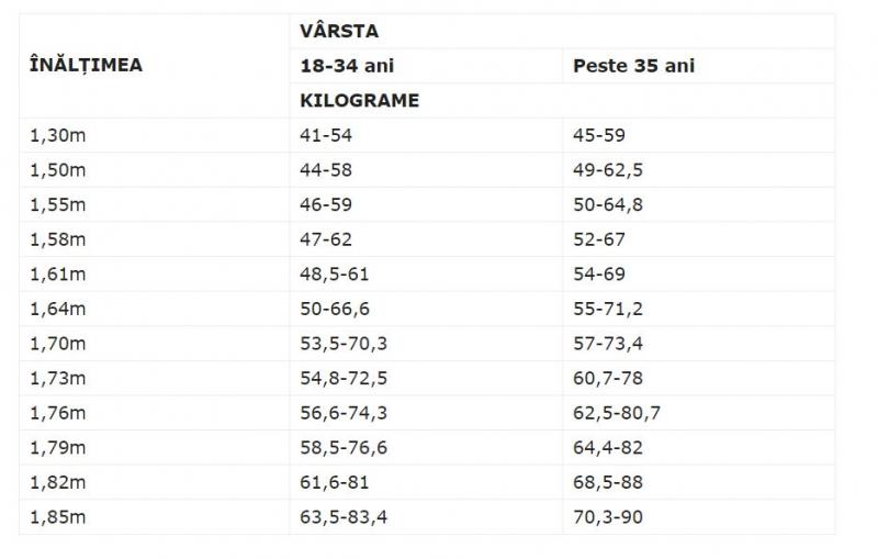 Tabel Cu Greutatea Ideala Cate Kilograme Trebuie Sa Ai In Functie De