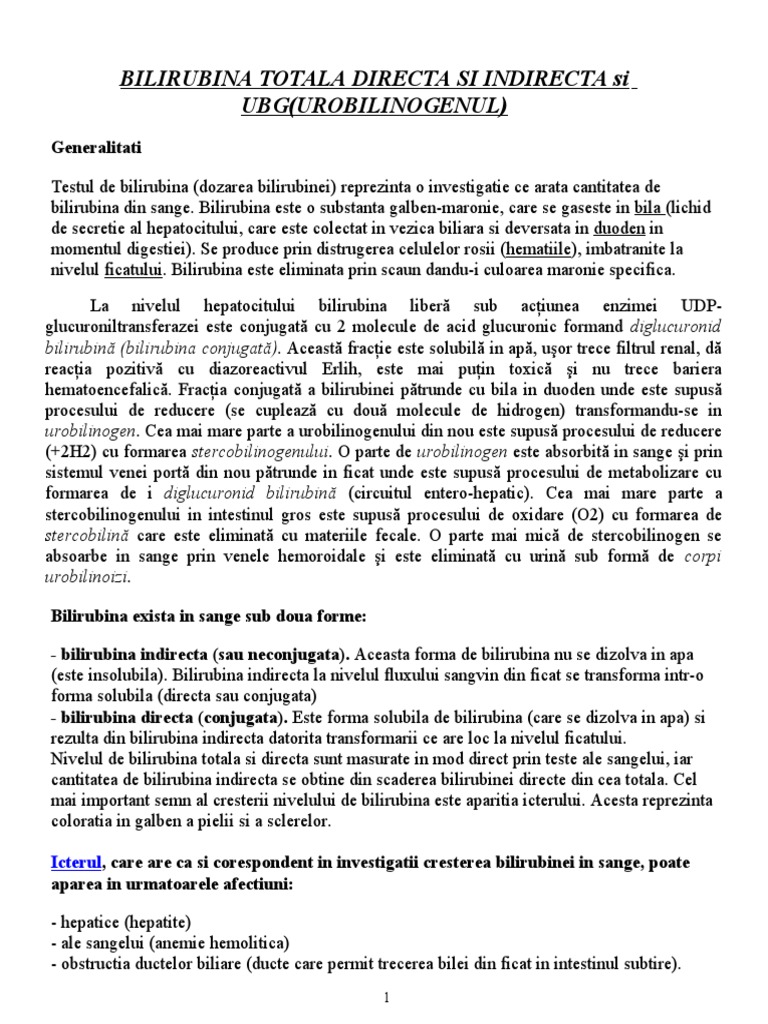 Depistare Bilirubina Directa Indirecta Totala