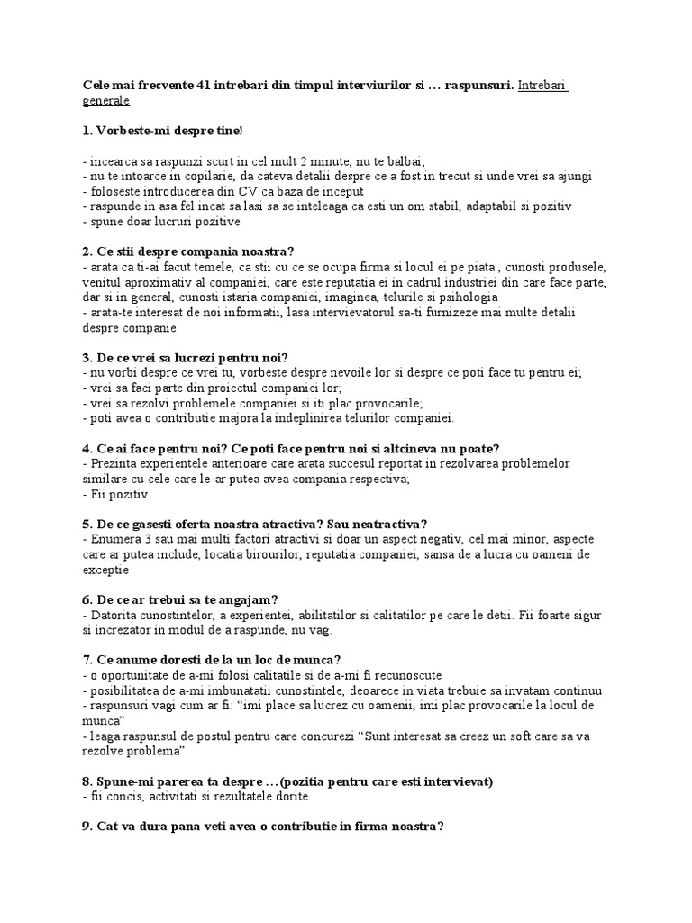 Cele Mai Frecvente 41 Intrebari Din Timpul Interviurilor Si Pdf Document
