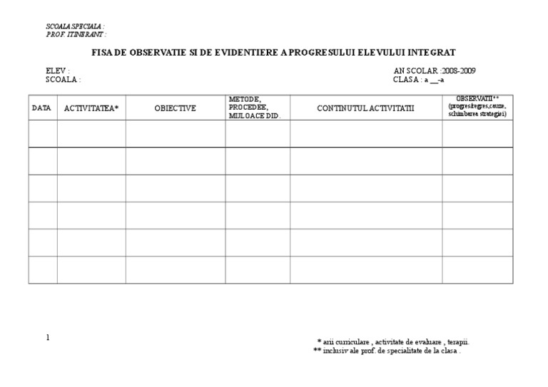 Fisa De Observare Regres Progres Elev Integrat Pdf