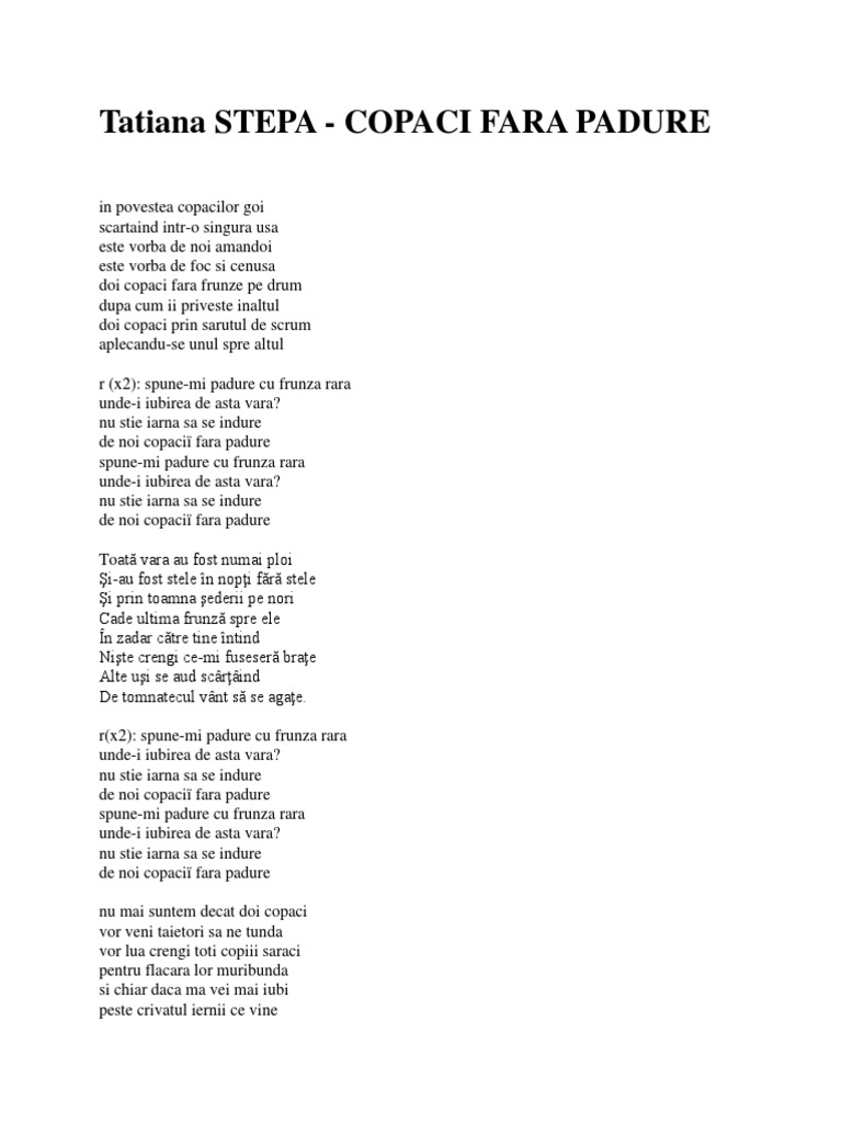 Copaci Fara Padure Versuri Tatiana Stepa Not Just Food
